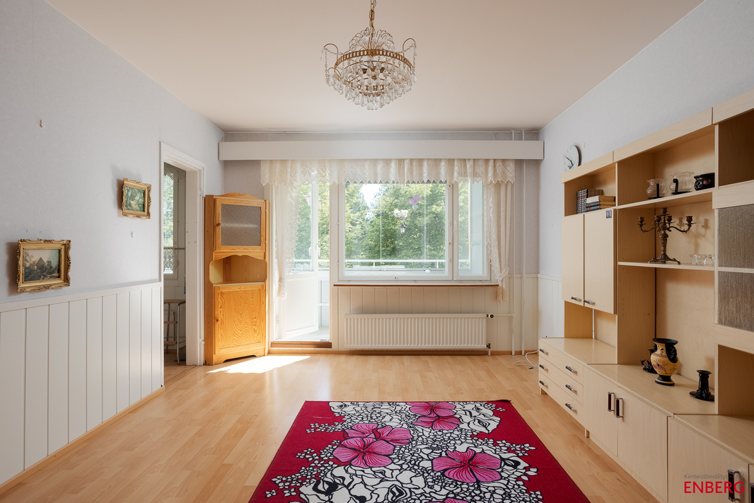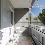 Asunto sijaitsee talon toisessa kerroksessa. Lasitettu, pitkä parveke. Vapautuu nopeasti.