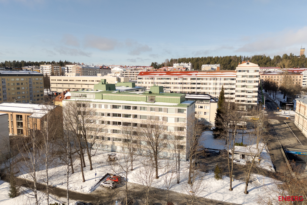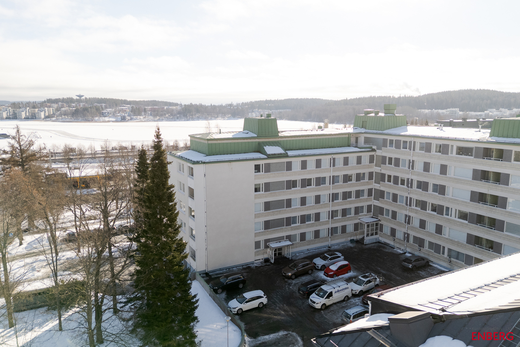 Tätä 4. kerroksen huoneistoa on remontoitu vuonna 2014 linjasaneerauksen yhteydessä sekä pintoja osittain vuonna 2023. Asunnossa on kaksi makuuhuonetta, tilava olohuone, erillinen keittiö, vaatehuone sekä kylpyhuone Olohuoneesta on käynti lasitetulle parvekkeelle, josta upea näkymä Jyväsjärvelle.
