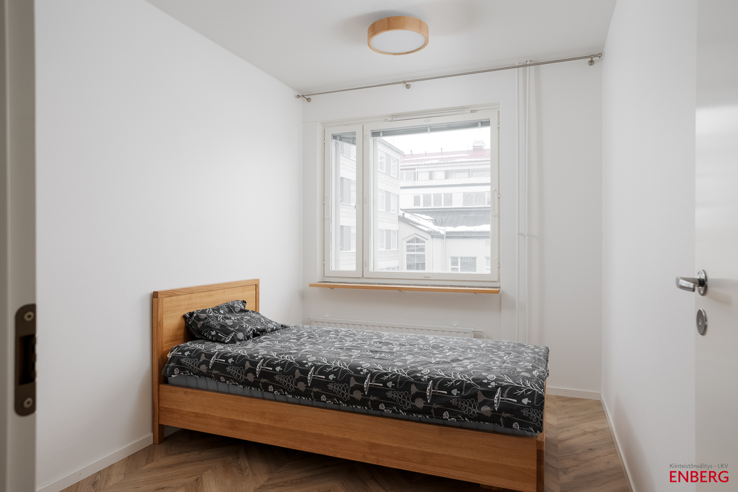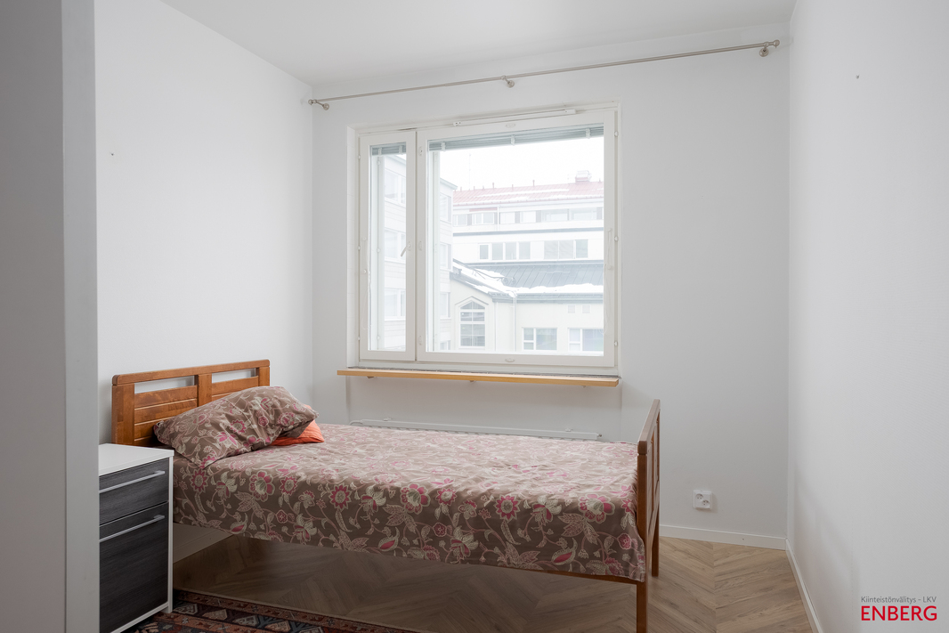 | Makuuhuoneen kuvaus | Lattia parkettia, seinät maalattu lasikuitutapetti. |