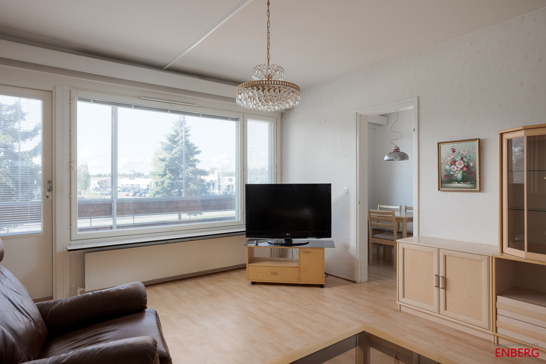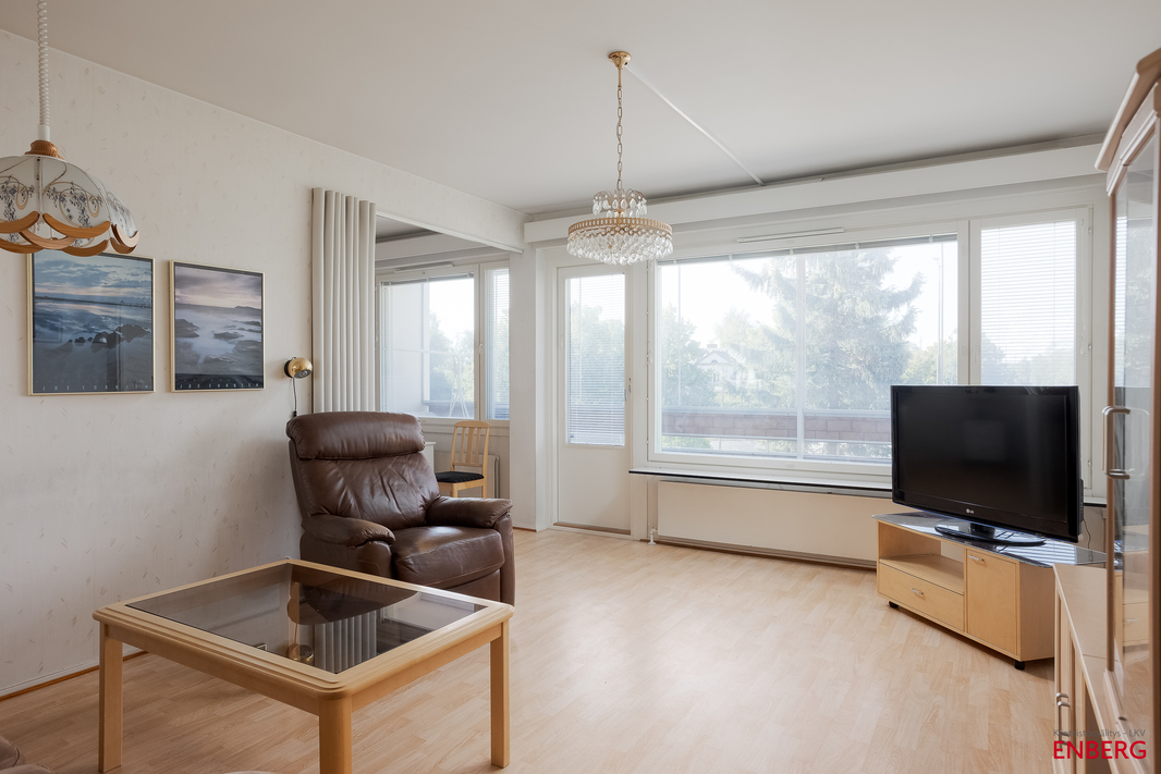 Tervetuloa tutustumaan tähän 64 m²:n kolmioon, joka sijaitsee talon ensimmäisessä kerroksessa (ei maantasolla). Asunnossa on avara ja valoisa olohuone, josta on käynti isolle lasitetulle parvekkeelle – täydellinen paikka rentoutumiseen keväästä syksyyn.