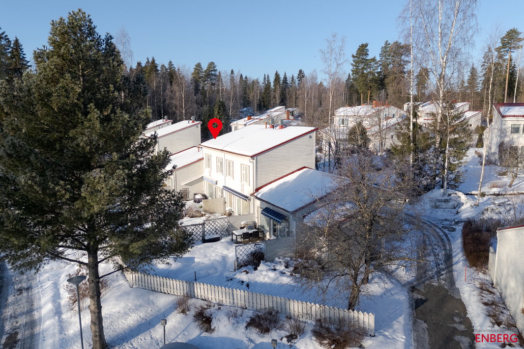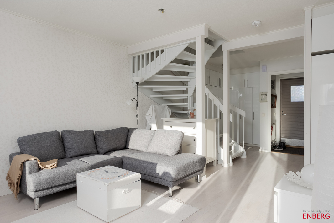 Ristikiventiellä sijaitseva viihtyisä kaksitasoinen rivitalokolmio. Kodin 73,5 m² on suunniteltu toimivaksi kokonaisuudeksi, jossa oleskelutilat ja makuuhuoneet sijoittuvat eri kerroksiin.