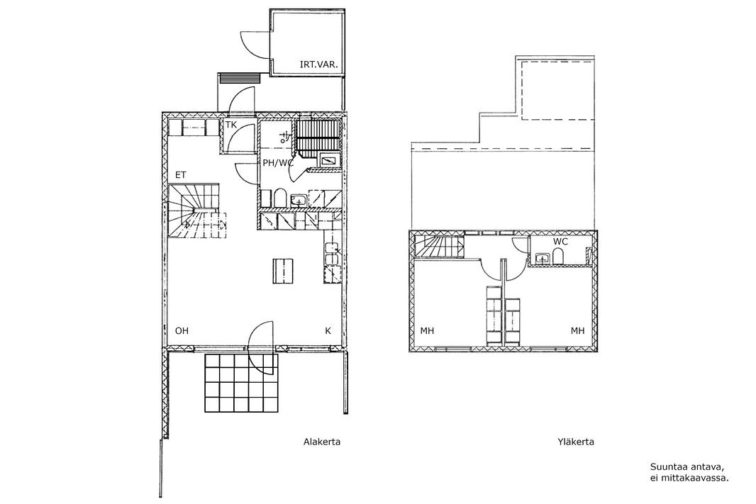 Yläkerrassa sijaitsevat kaksi hyvänkokoista makuuhuonetta sekä erillinen wc, mikä tuo arkeen toimivuutta.