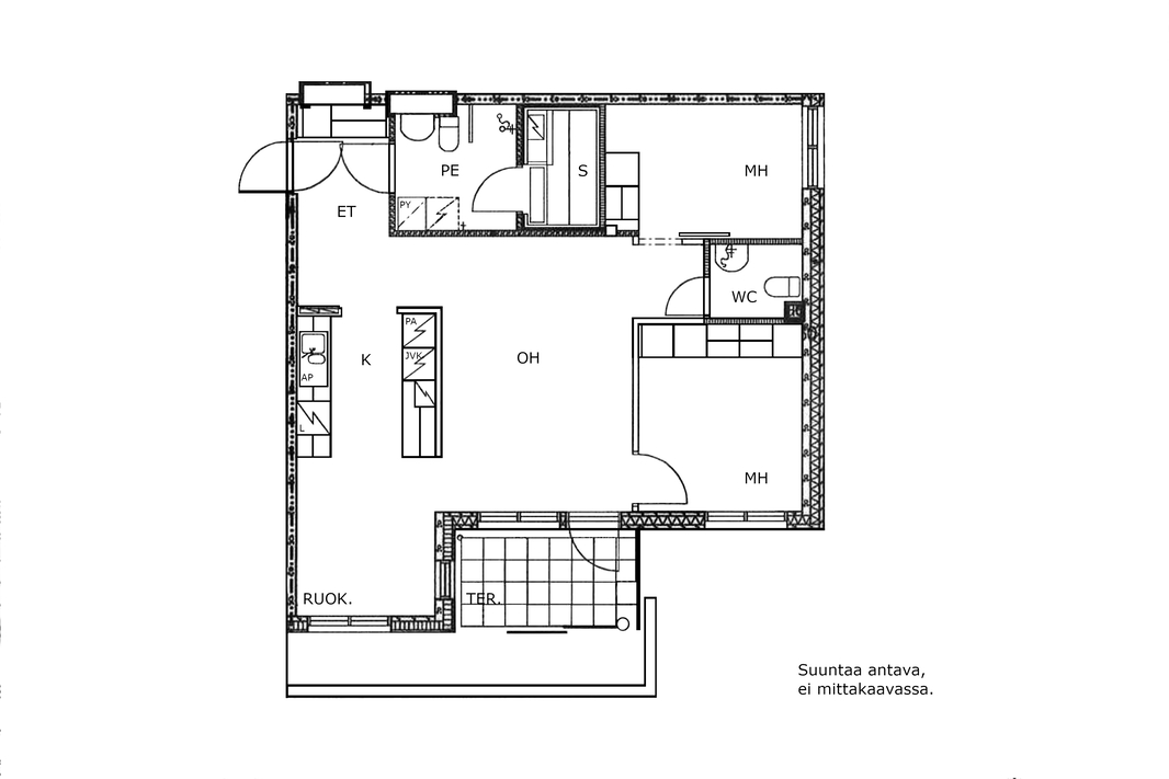 | Keittiön varustelu | Parkettilattiat, MDF-kaapistot. |