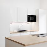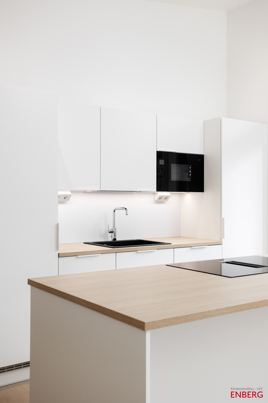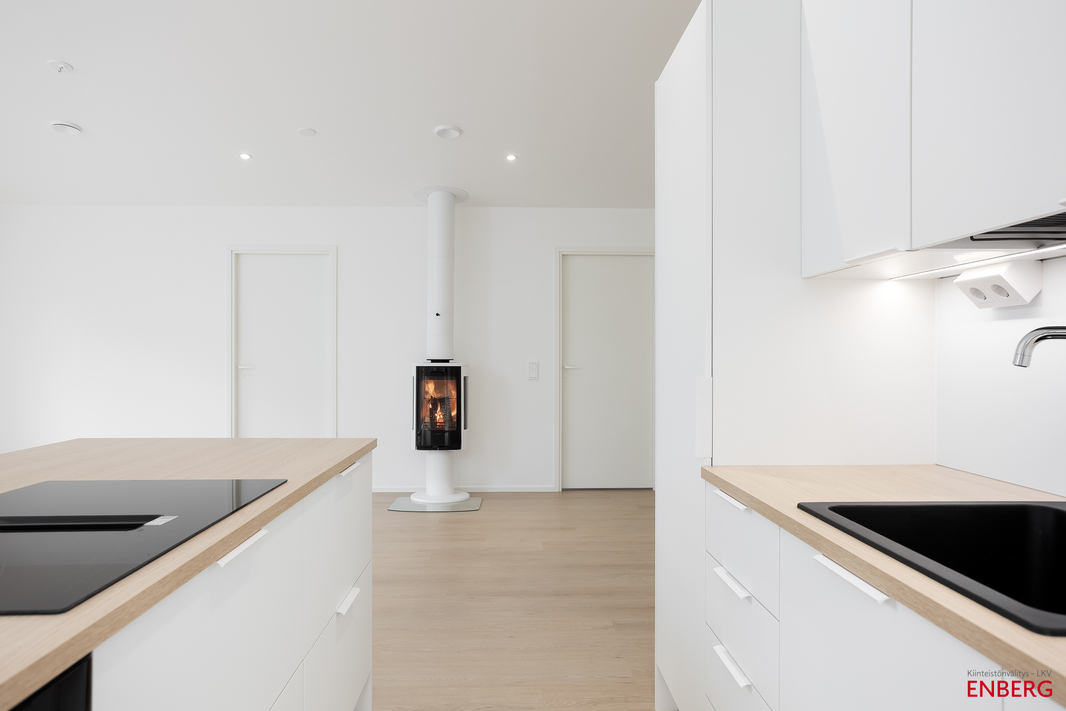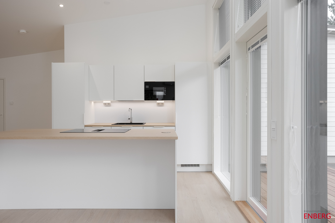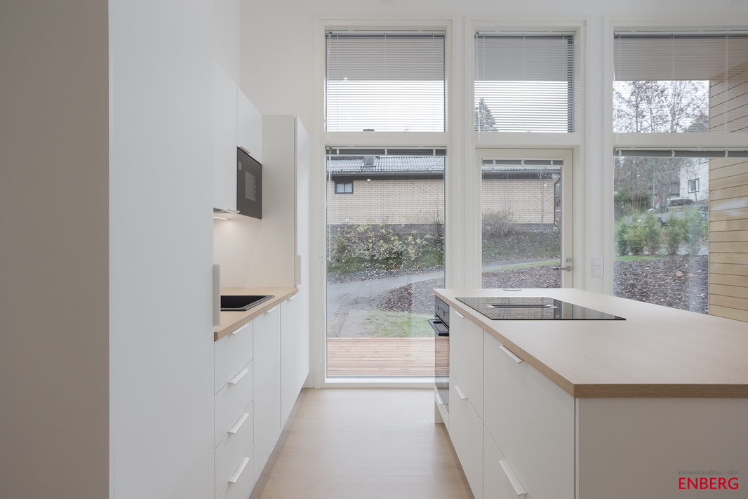 | Keittiön varustelu | Puustellin kalusteet, ostaja voi vaikuttaa materiaalivalintoihin. Keittiön AEG kodinkoneet ovat integroituja. |