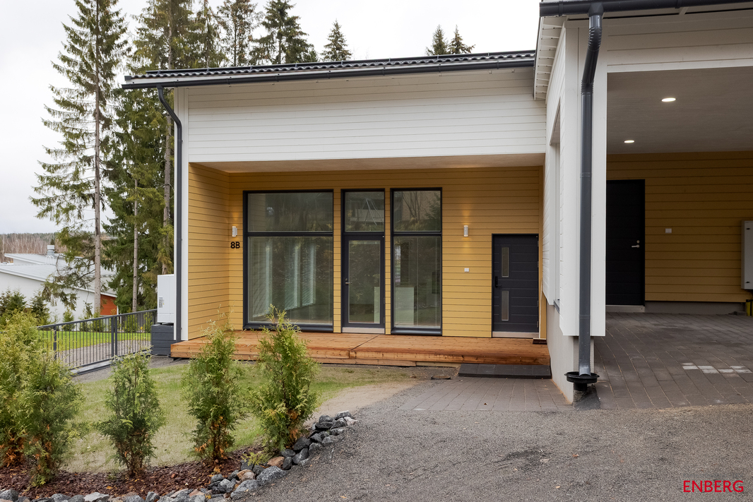Rauhallisella paikalla moderni, tasokas paritalo. Keittiö ja olohuone korkeampaa sekä yhtenäistä tilaa. Kolme makuuhuonetta, kodinhoitohuone, erillinen wc, pesuhuone, sauna, eteisessä tilava säilytystila vaatteille ja kengille. Edullinen lämmitys hoituu ilmavesilämpöpumpulla (vesikiertoinen lattialämmitys). Lisäksi käytössä on Contura-takka ja viilennykseen ilmalämpöpumppu. Autokatospaikka ja lämmin varasto. Oma kulmatontti. Lähellä Päijänne, Keljonkeskus ja Keljonkankaan uusi koulu. Hyvät urheilu- ja liikuntamahdollisuudet. Hallinnanjakosopimus.