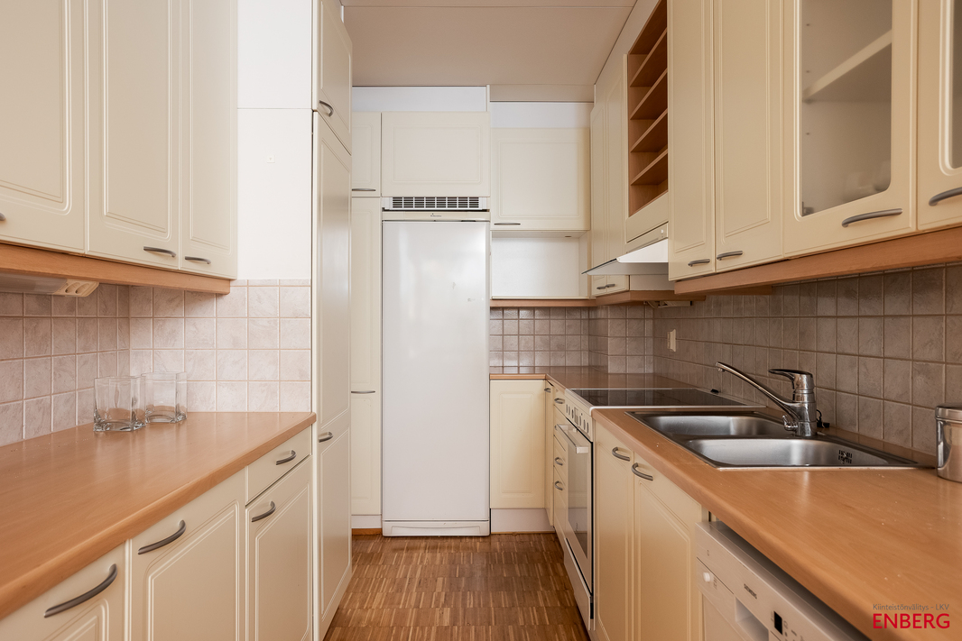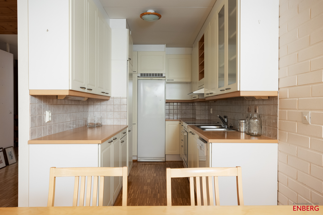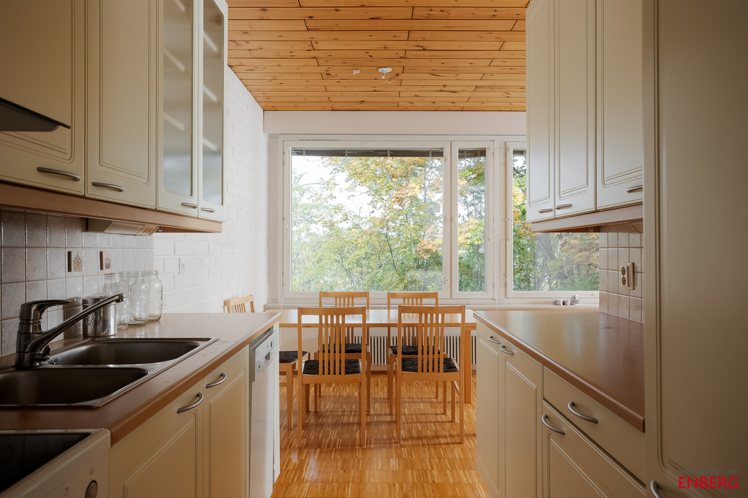Keittiön varustelu | Sauvaparkettilattia, levykatto |