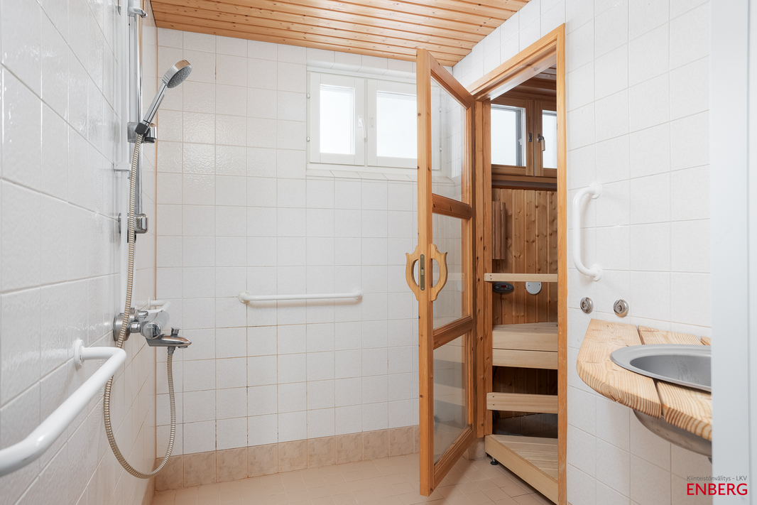 Asunnossa on kaksi vaatehuonetta, kodinhoitohuone, erillinen WC sekä toinen WC kodinhoitotilan yhteydessä. Oma sauna sähkökiukaalla tarjoaa rentouttavat löylyt ja takapihan suojaisa terassi toimii erinomaisena lisäoleskelutilana kesäisin. Asunto on tyydyttäväkuntoinen ja heti vapaa uusille asukkaille.