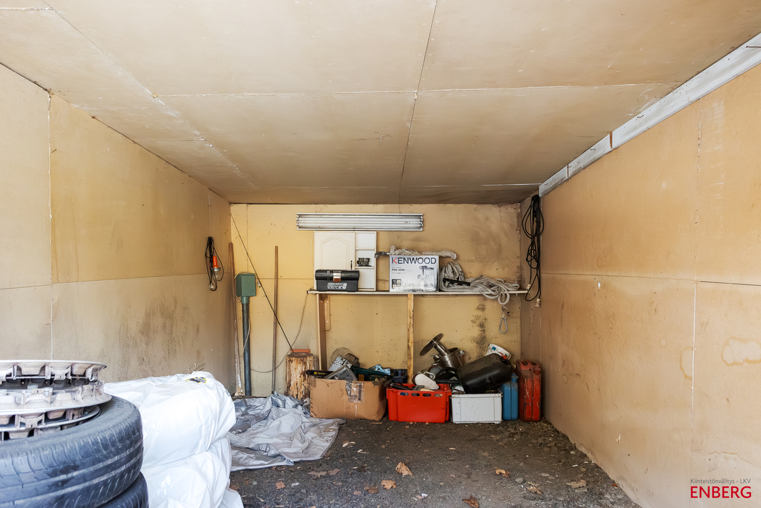 Auton säilytys Kevyt autotalli. Autotallissa sähköpistokepaikka.