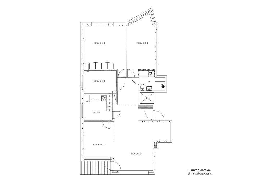 | Huoneistoselitelmä | 4h+k+rt+kph+parveke |