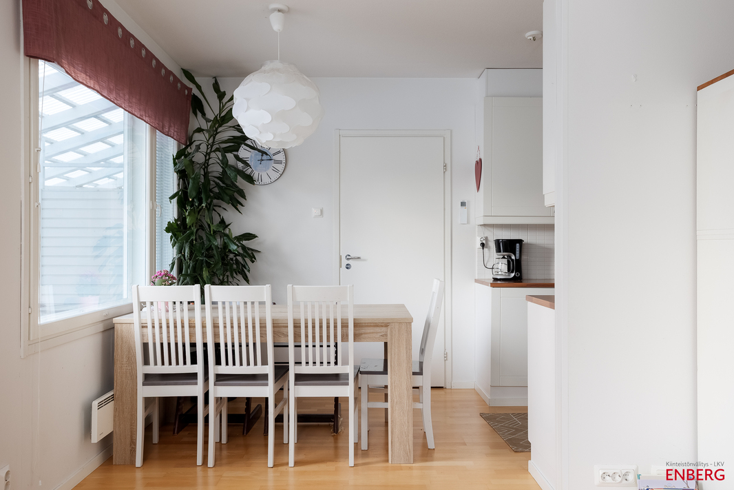 Tervetuloa tutustumaan tähän kauniiseen ja hyvin pidettyyn rivitalon päätyhuoneistoon Tikkakoskella!