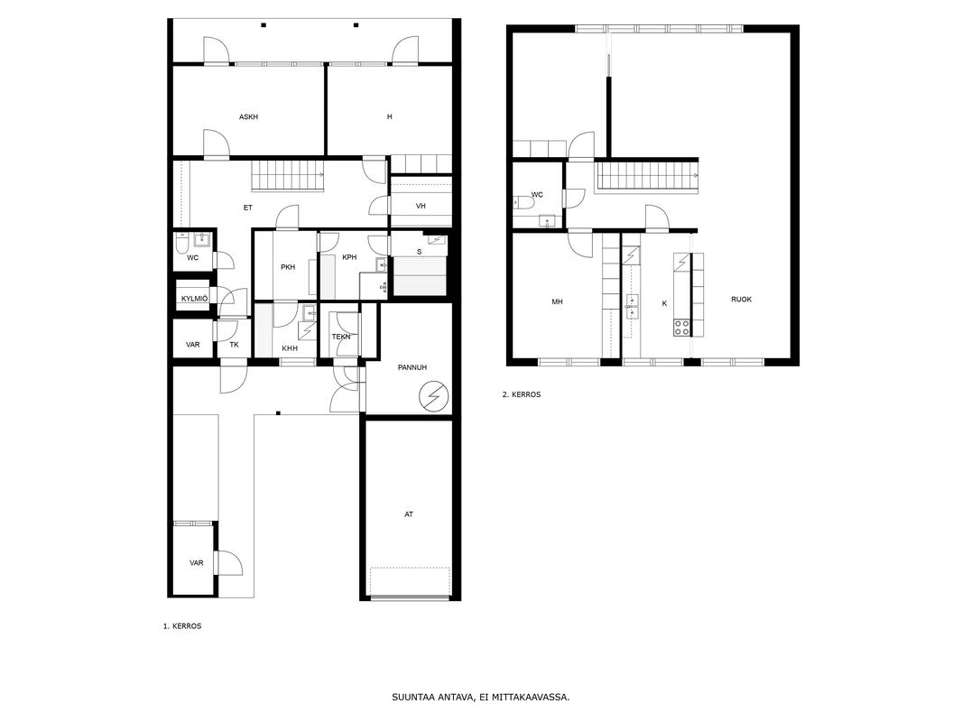 WC-tilojen kuvaus | Erillinen WC alakerrassa ja yläkerrassa. |