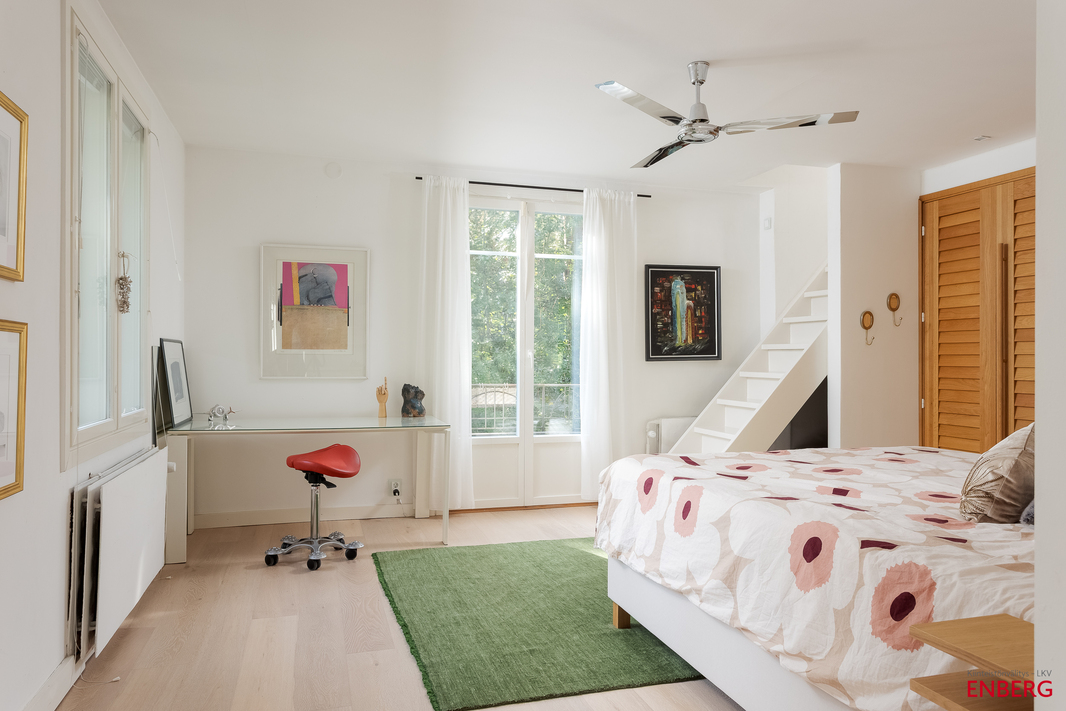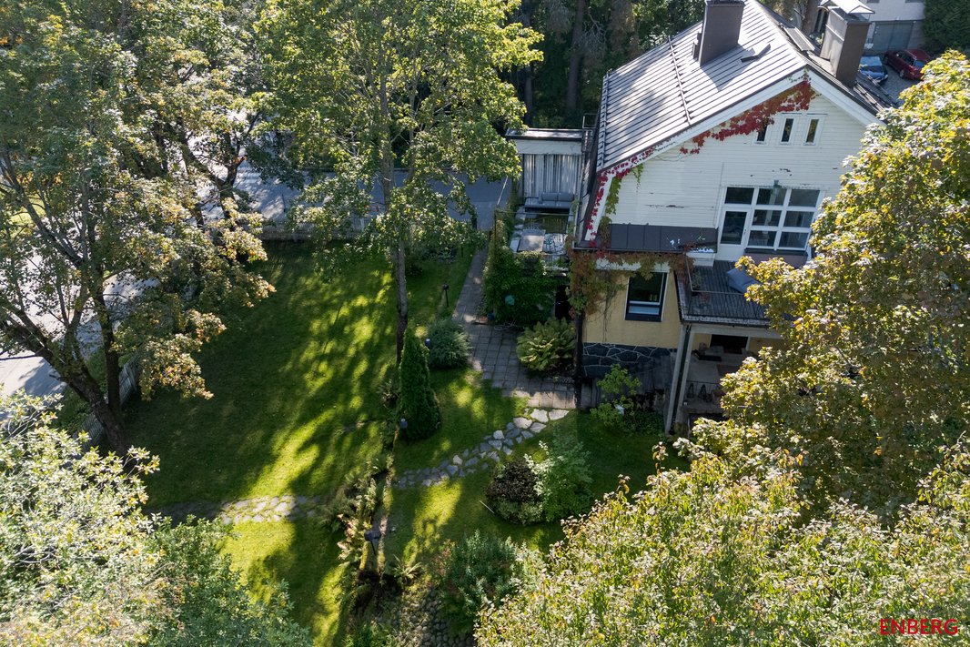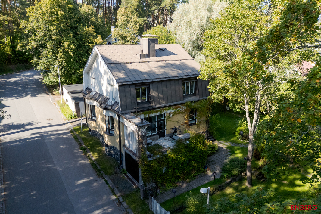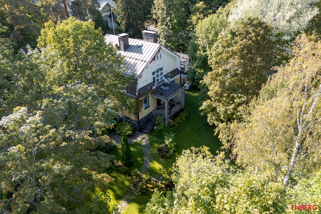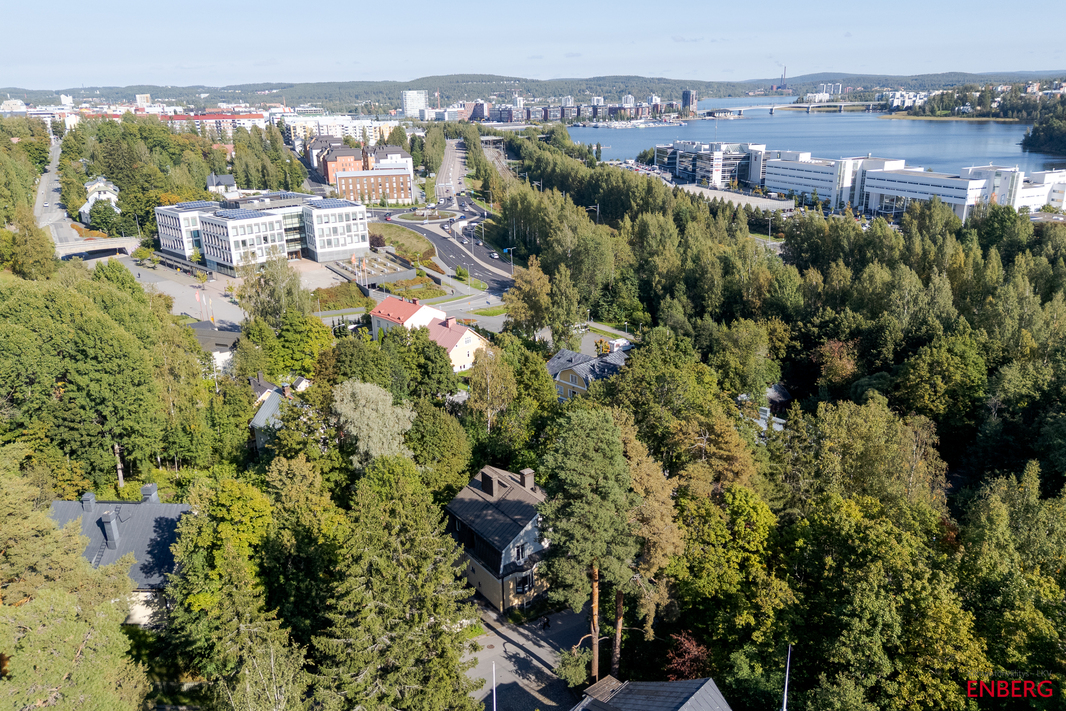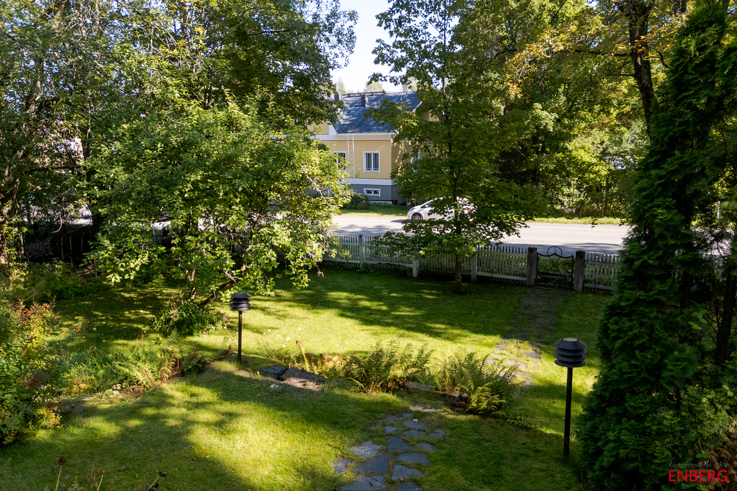 Sisääntulokerrokseen on asennettu tyylikäs ponttiparkettilattia, joka luo ylellistä yhtenäisyyttä tiloihin. Yläkerrasta löytyy arkiolohuone, kolme makuuhuonetta ja moderni kylpyhuone. Neljännessä kerroksessa sijaitsee vinttihuone, joka toimii erinomaisesti työtilana tai nuoren omana valtakuntana. Alakerta hurmaa kotiteatteri- ja takkahuonetilallaan, josta löytyy myös tilava kylpyhuone mikrosementtipinnoilla ja kylpyammeella, sekä poikkeuksellisen suuri sauna. Arjen helpotukseksi tarjolla on kodinhoitohuone, erillinen wc ja runsaasti varastotilaa. Lämmityksestä vastaa kaukolämpö ja tunnelmaa taloon tuo kolme toimivaa avotakkaa. Ikkunoista avautuvat näkymät alueen muihin huviloihin ja vehreään puistoon. Jyväsjärven ulkoilureitti, satama ja keskustan palvelut ovat kävelymatkan päässä.