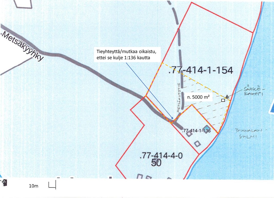 Lisätietoja rakennusoikeudesta | Lohkottavalle määräalalle saa rakentaa loma-asunnon, sekä tarpeelliset sauna- ja talousrakennukset yhteensä 150 krs-m². Loma-asunnon tulee olla vähintään 30 m keskivedenkorkeuden määrittämästä rantaviivasta. Saunarakennus (max 20 m²) voidaan sijoittaa vähintään 15 m etäisyydelle rantaviivasta. |