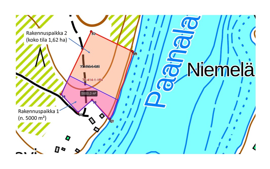 Voit halutessasi neuvotella koko tilan (1,62 ha) ostamisesta, jolloin kauppaan sisältyisi kaksi rakennuspaikkaa! Tällöin hinta on noin 100 000 €.